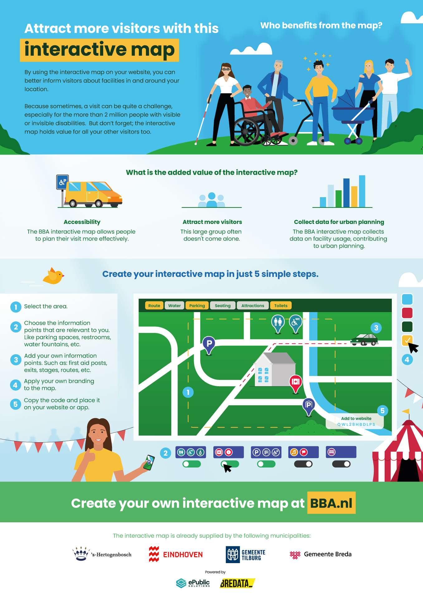 Voor de gemeente heeft dit enkele voordelen. Zo hoeft de gemeente niet zelf bekendheid te geven aan het bestaan van de BBA-kaart, omdat deze op de website van het evenement staat. Hoe meer evenementen de BBA-kaart plaatsen, hoe beter het inzicht wordt in het gebruik van de faciliteiten. Wat een mooie input is voor stedelijke ontwikkeling.